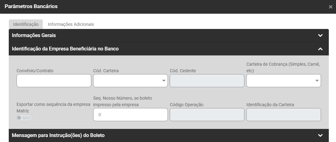 - Sequência do Nosso Número, se boleto impresso pela Empresa