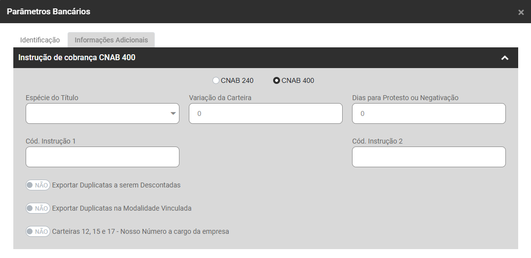 - Exportar Duplicatas na Modalidade Vinculada - Sim ou Não