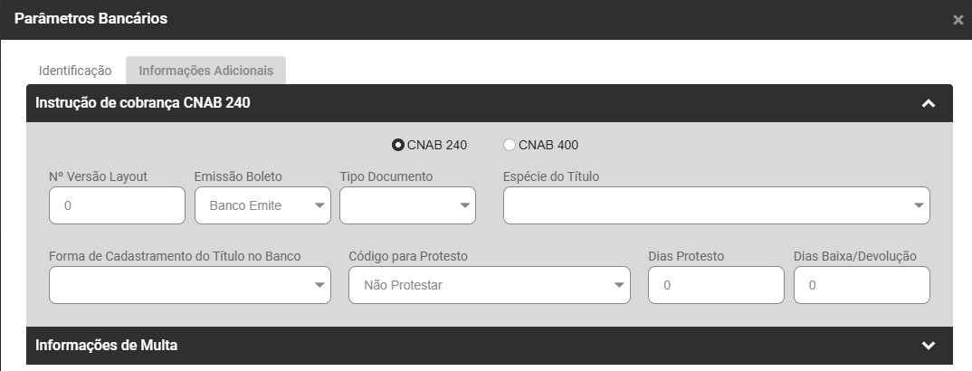 Instrução para cobrança CNAB 240, informe: