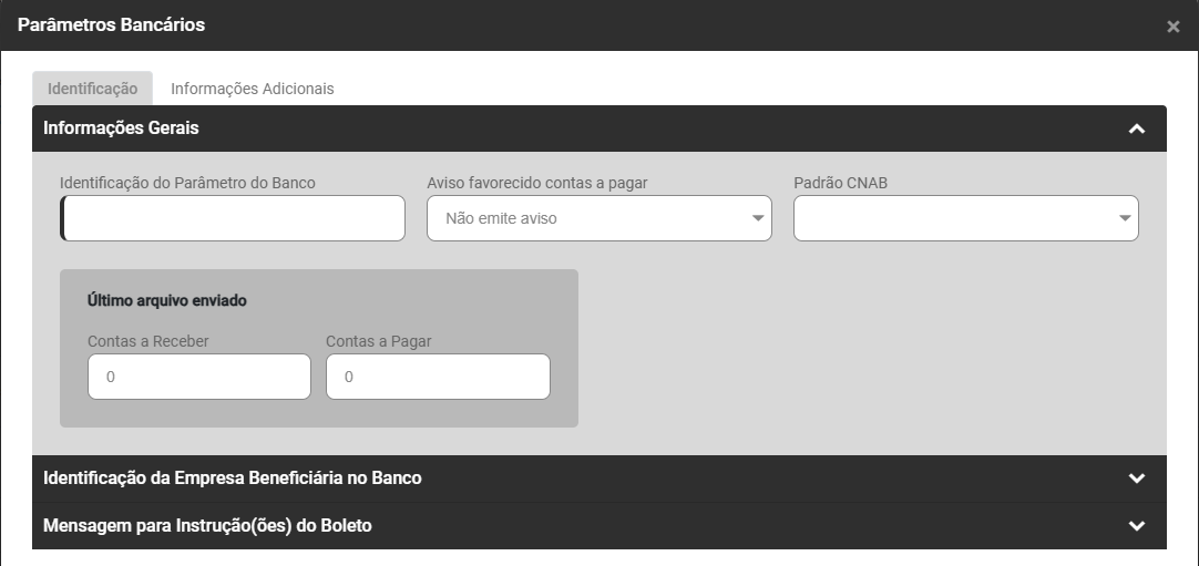 Ao clicar no botão Adicionar você encontrar 2 abas - Identificação e Informações Adicionais