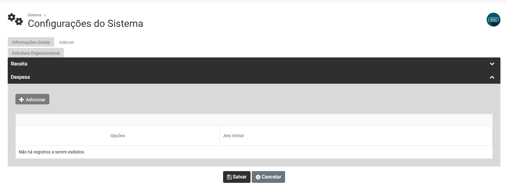 O cadastro de Despesas estará disponível se você definiu em Configurações que as Despesas serão utilizadas no Sistema Adecon