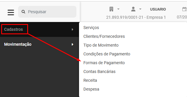 Para cadastrar as Formas de Pagamento você deverá acessar o menu Cadastros>Formas de Pagamento