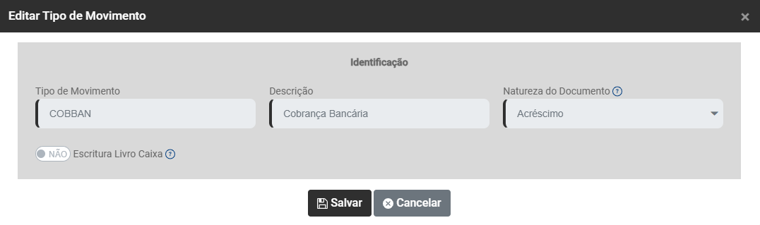 Cadastro de Tipo de Movimento