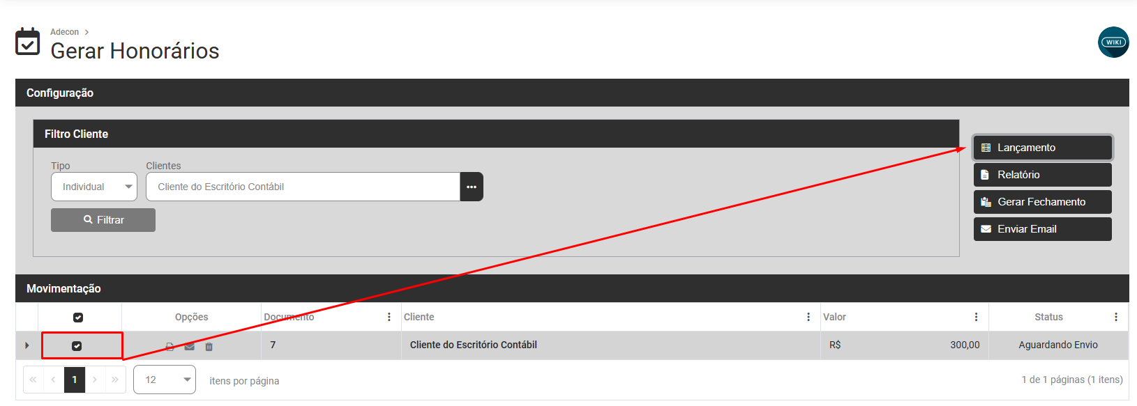 Selecione os Clientes e em seguida clique no botão Lançamento