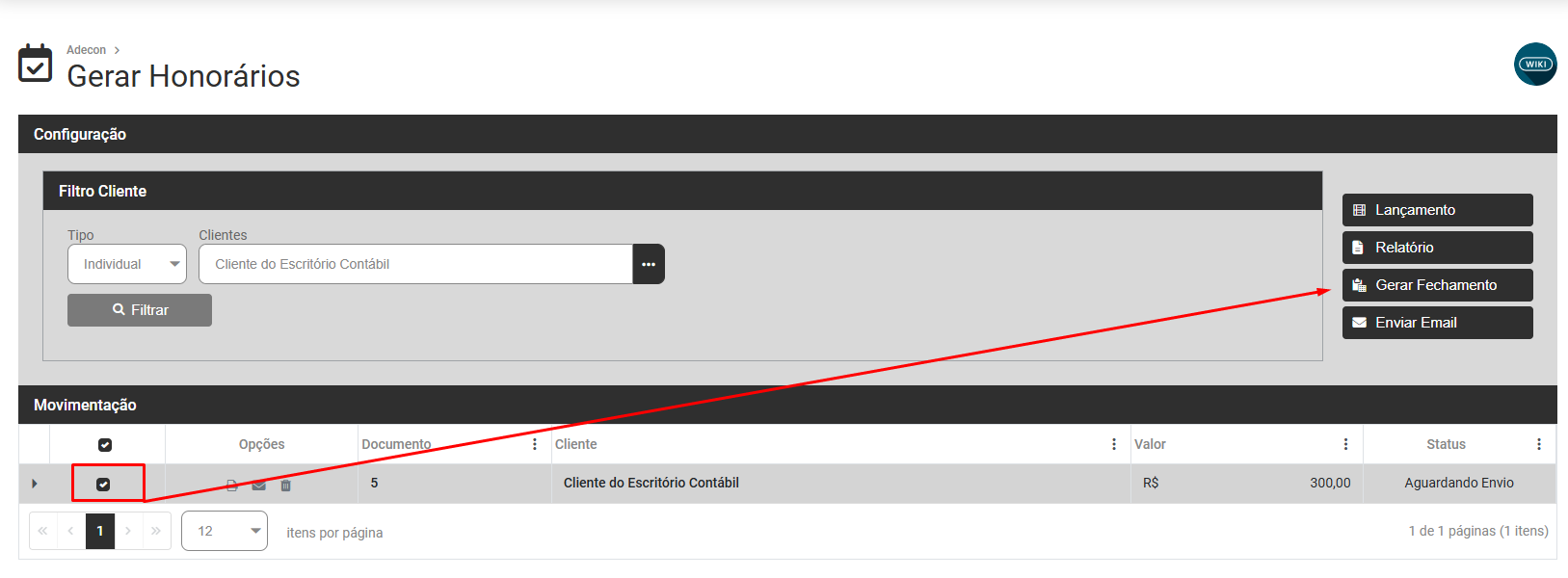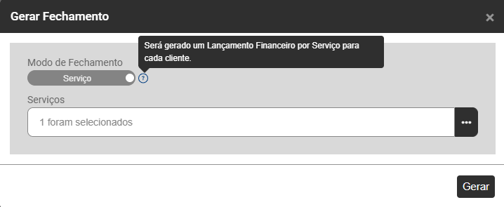 Selecione os Clientes e em seguida clique no botão Gerar Fechamento