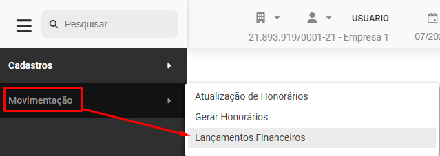 Para cadastrar ou visualizar os Lançamentos Financeiros você deverá acessar o menu Movimentação>Lançamentos Financeiros