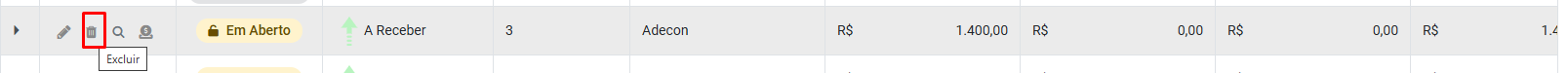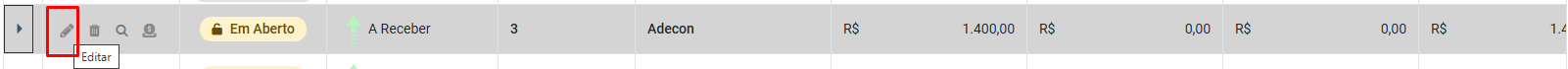 3) Editar - O Sistema abrirá o Lançamento Financeiro para que você faça alterações no mesmo