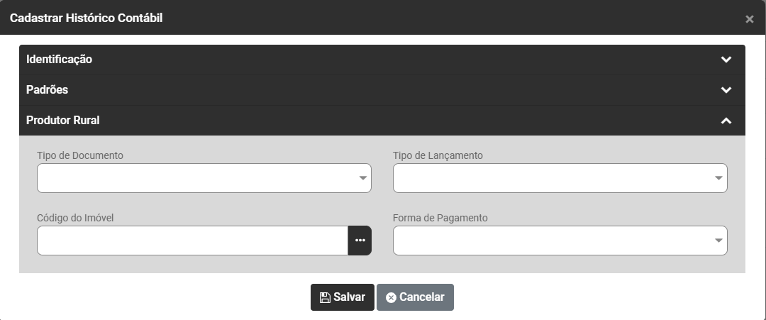 - Conta de Crédito - Preencha uma Conta Contábil para levar automaticamente no lançamento contábil como crédito ao incluir esse histórico.