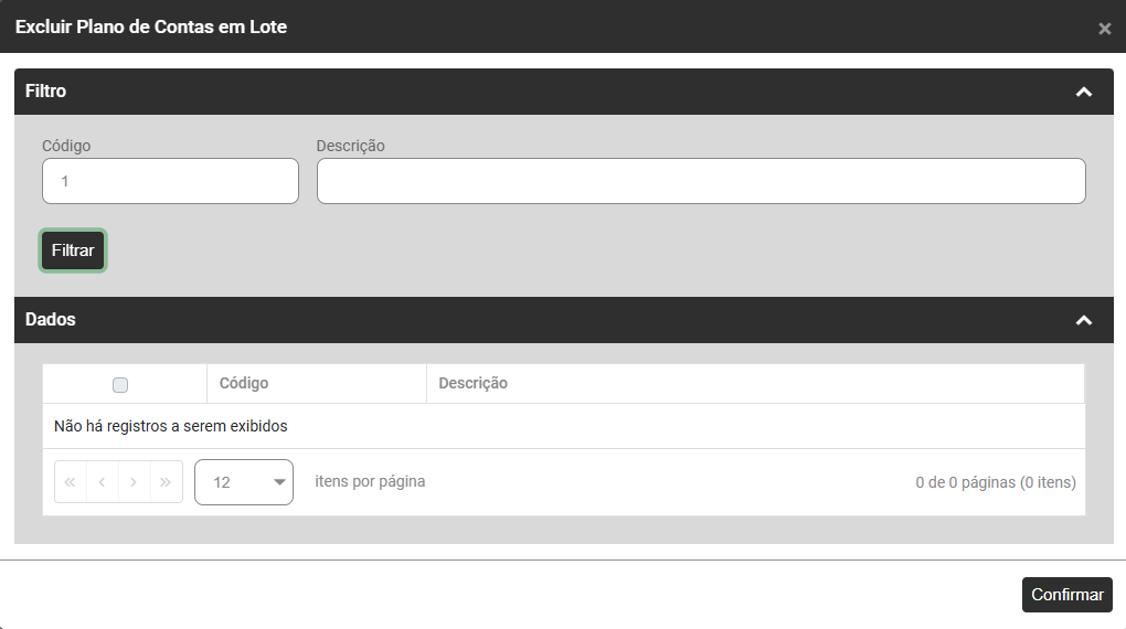 Ao Clicar no botão Excluir em Lote você deverá definir qual o lote que deverá ser excluído