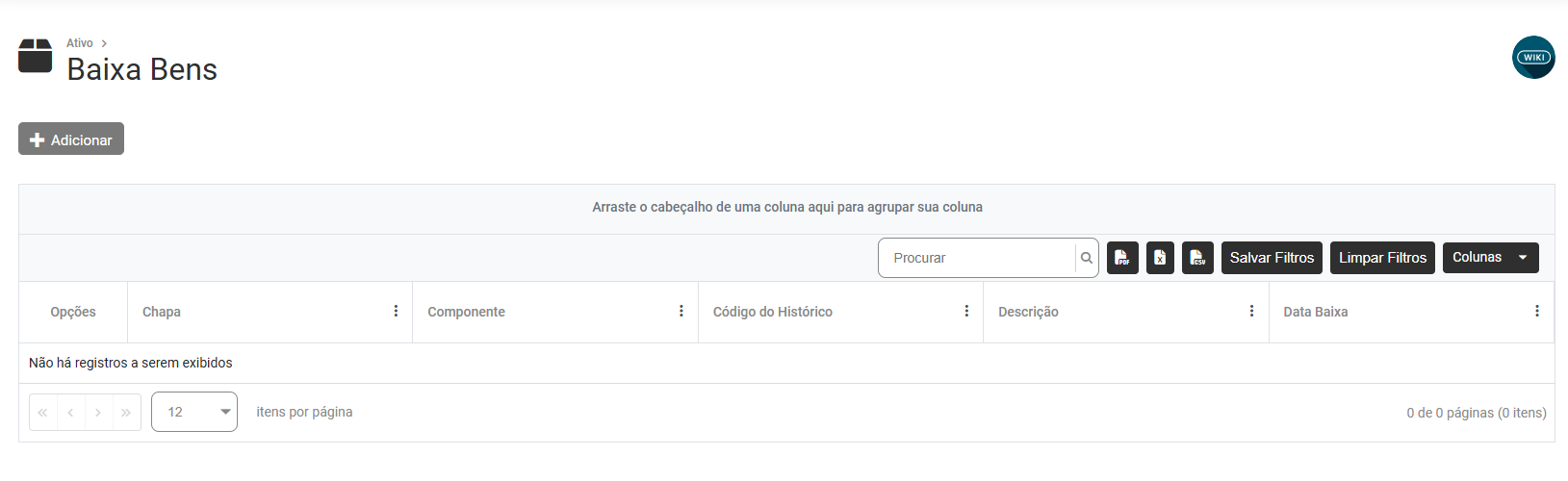 Cadastro da Baixa dos Bens