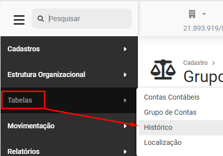Para cadastrar os Históricos que serão utilizados nos Lançamentos Contábeis, acesse o menu Tabelas>Históricos