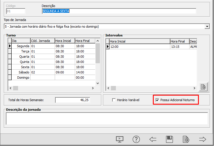 Descrição: Campo de preenchimento obrigatório: Horário Noturno.