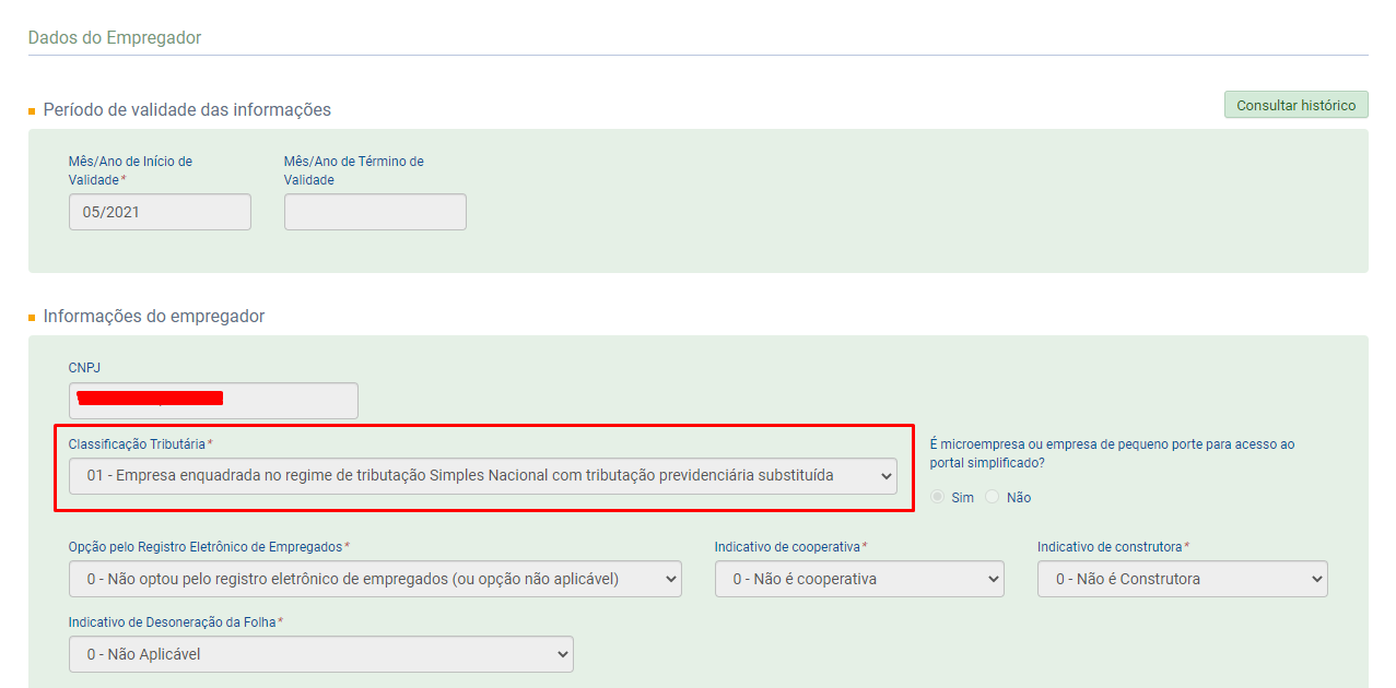 Código 0001 - Campo de preenchimento obrigatório: Indicador de Contribuição Substituída.