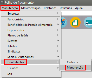 Caso a empresa esteja marcada com o porte ‘Construção Civil/Locação Mão de Obra/Temporários’ e não esteja correto, altere para ‘Outra’ e envie novamente a carga do s1020 que está com o status ‘Aguardando Correção’. Se não for o seu caso, prossiga no próximo passo. - Caso a empresa realmente pertença ao porte de ‘Construção Civil/Locação Mão de Obra/Temporários’ significa que ela está com informação faltando na Obra/Contratante. Para correção acesse o menu ‘Manutenção>Obras>Manutenção’ ou ‘Manutenção>Contratantes>Manutenção’: