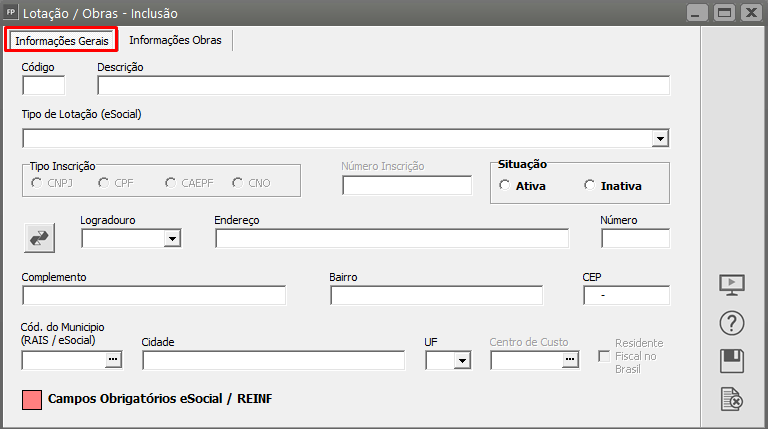Obra → preencha corretamente todos os campos da aba 'Informações Gerais':