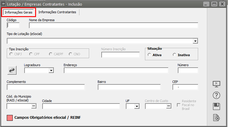 Contratante → preencha corretamente todos os campos da aba 'Informações Gerais':