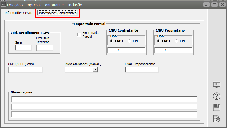 Contratante → preencha corretamente todos os campos da aba 'Informações Contratantes':