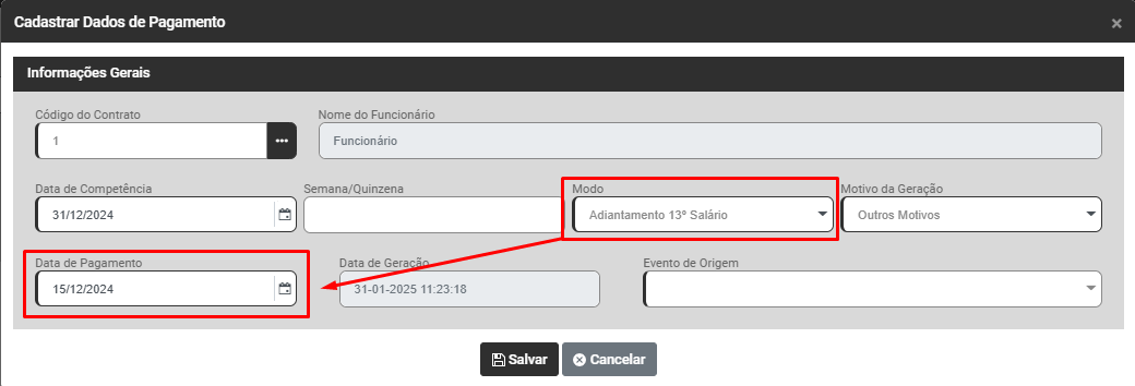 Existe algum pagamento em desconformidade com os demais, por exemplo pagamento de Adiantamento de 13º salário no mês de dezembro.