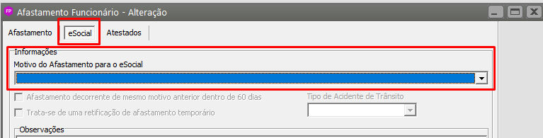 3- Se o motivo for "doença" retificar o S-2200 (caso o afastamento seja antes da obrigatoriedade).