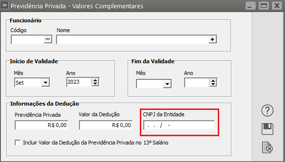 2. Informe o CNPJ da Entidade referente a Previdência Privada cadastrada.