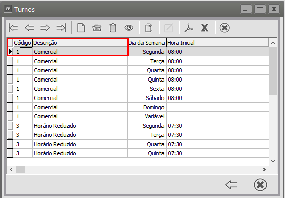 Após, acesse ‘Manutenção>Funcionários>Tabelas>Turnos (Carga Horária)>Manutenção’, abra o Turno informado no cadastro do funcionário e verifique se tem código de jornada informado: