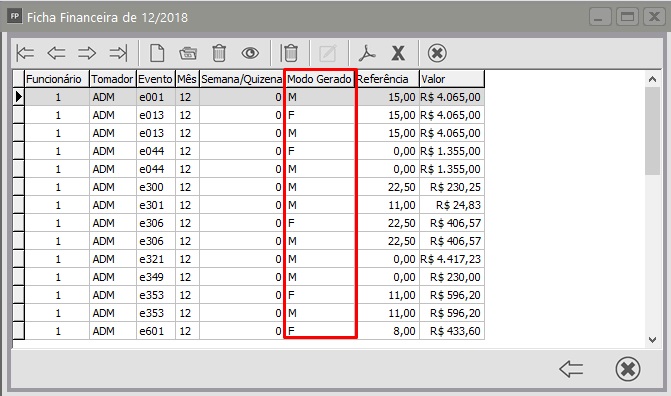 Confira se na Ficha financeira do funcionário tem Modos gerados que não constam no menu Movimentação/Rotinas Mensais/Datas de Pagamento/Funcionário/Manutenção