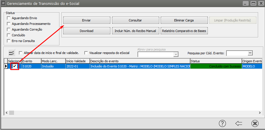 6. Após o envio S1020 voltar autorizado, reenvie carga S1200 ou S2299.