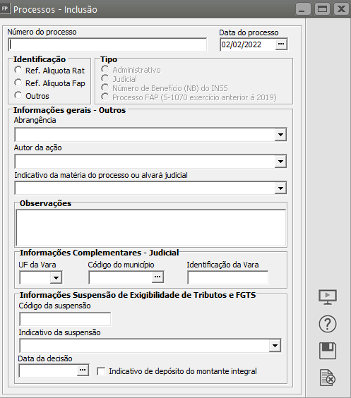Ação Sugerida: Verifique se as informações do número do processo e tipo do processo estão corretas