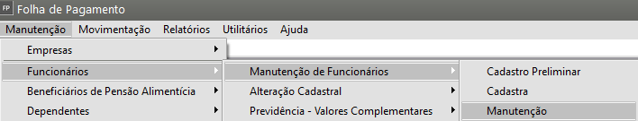 Correção: Acessar o menu Manutenção > Funcionários > Manutenção de Funcionários > Manutenção