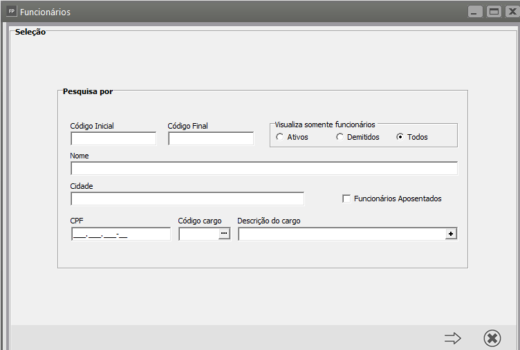 Definir o código do funcionário e clicar na seta Avança