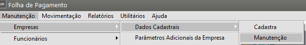 Correção: Acessar o menu Manutenção > Empresa > Dados Cadastrais > Manutenção