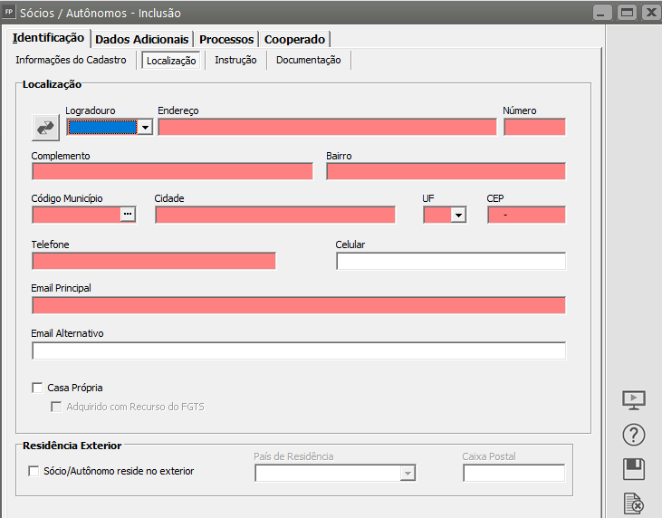 Em seguida edite o Cadastro do Sócio/Autônomo e verifique as informações cadastradas na aba Localização