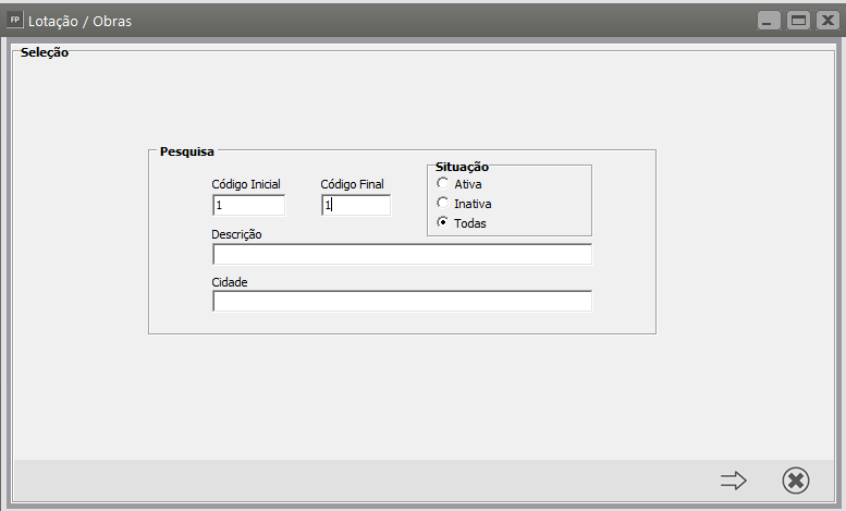 Pesquise pelo código da obra que apresentou a inconsistência e clique na seta Avança