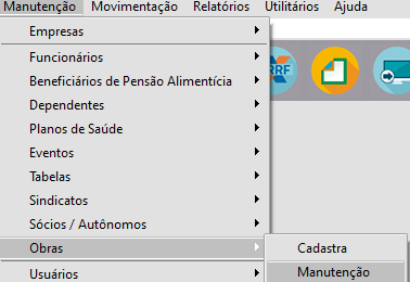 Correção: Acesse o menu Manutenção > Obras > Manutenção