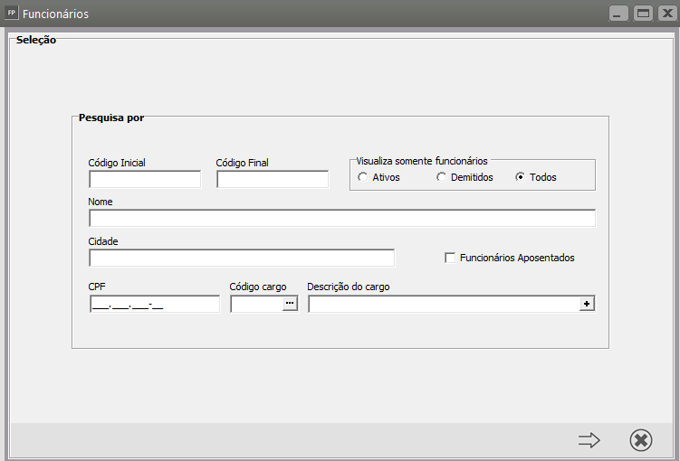 Pesquise pelo Código do Funcionário e clique na seta Avança