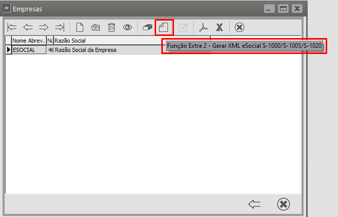 Clicar na Empresa e em seguida clicar no Botão Função Extra 2, para Gerar uma Carga do evento para o eSocial