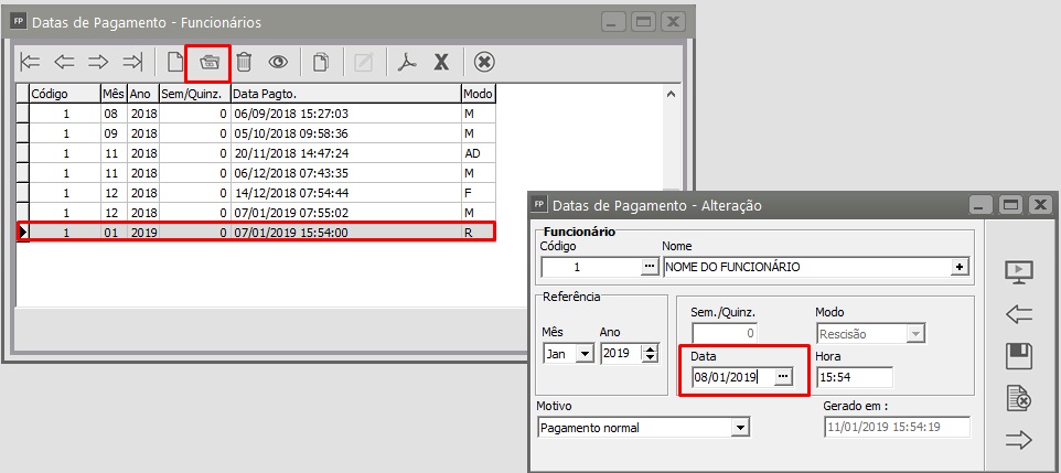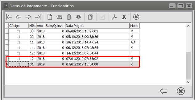 Clique na seta avança e verifique se existe geração de hollerith com mesma data de pagamento