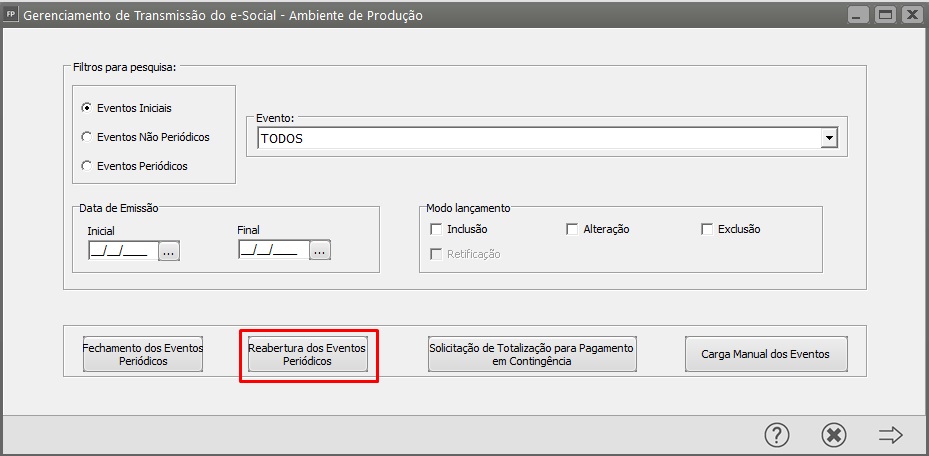 - No Gerenciamento de Transmissão do e-Social, clique em reabertura dos eventos.