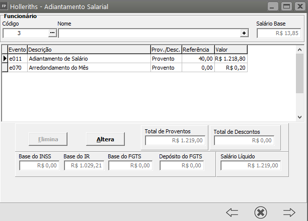 Defina o funcionário e de enter, confira a informação geradas referente ao adiantamento de salário do funcionário
