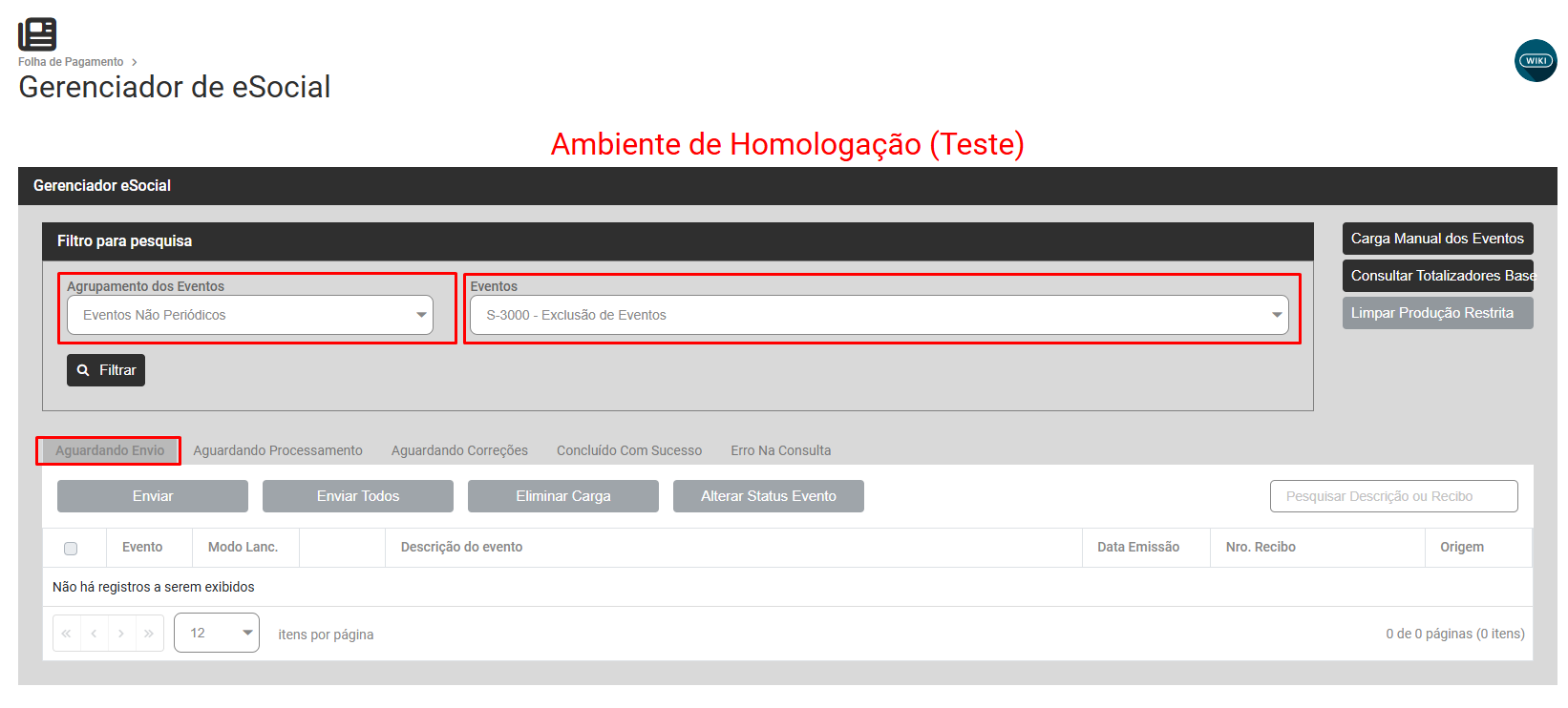 Se não houver uma carga S3000 do evento S1210 aguardando envio, Clique no Botão Carga Manual dos Eventos