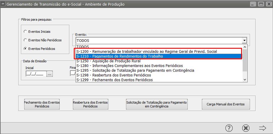 Após o envio dos eventos clique no botão Fechamento dos Eventos Periódicos e será gerada a carga de fechamento do periodo