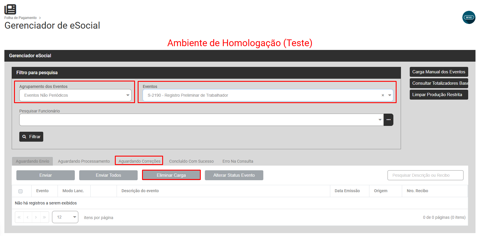 Em seguida exclua a carga S2190 que foi rejeitada pelo Portal do eSocial