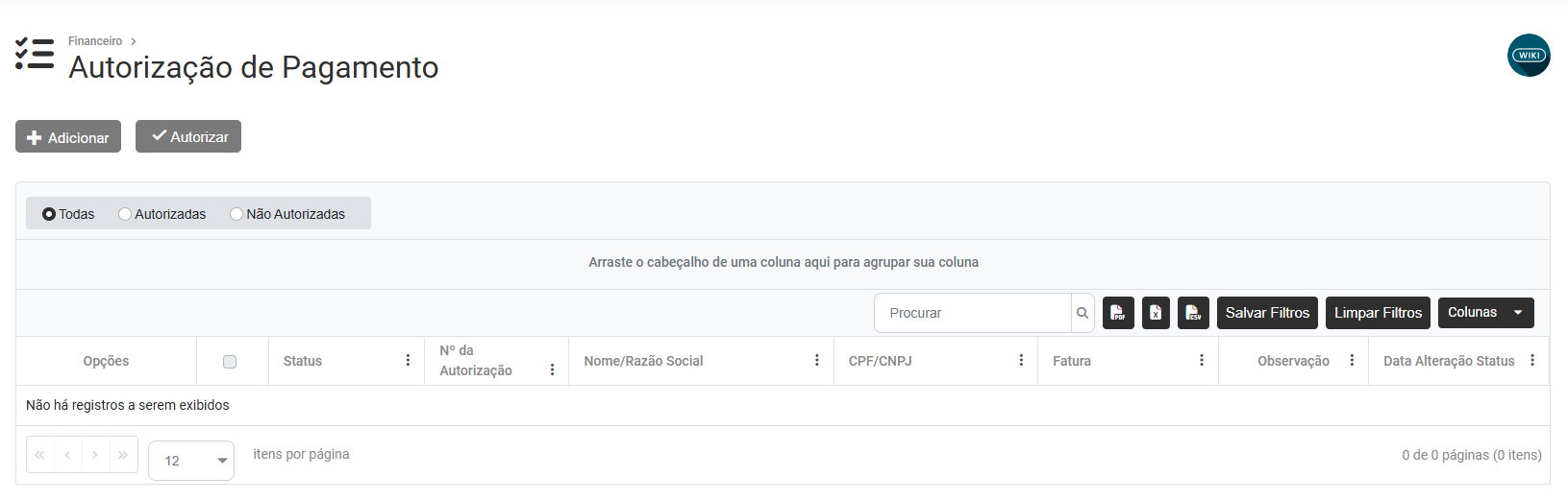 ....Cadastro de Autorização de Pagamento (Contas a Pagar)