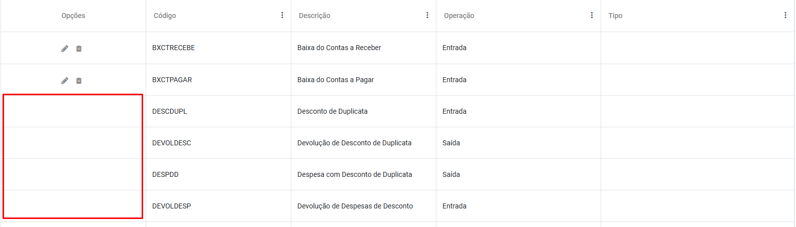 - Operação - Entrada ou Saída