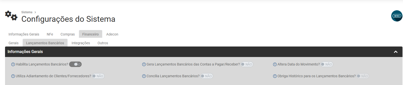 O menu só estará disponível para utilização se você definiu nas Configurações do Sistema Financeiro que irá habilitar Lançamentos Bancários