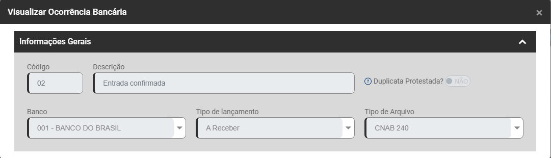 - Duplicata Protestada - Sim ou Não - Ao definir SIM na importação do arquivo de retorno de remessa do banco será atualizada a duplicata para “Protestada”.