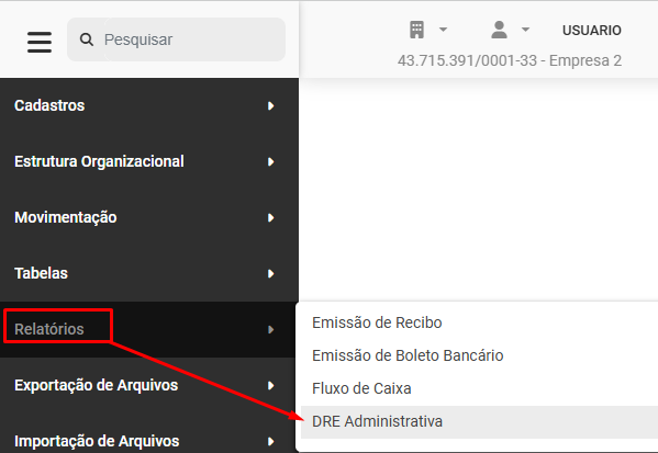 Para visualizar a Demonstração de Resultados Administrativa - DRE, acesse o menu Relatórios>DRE Administrativa