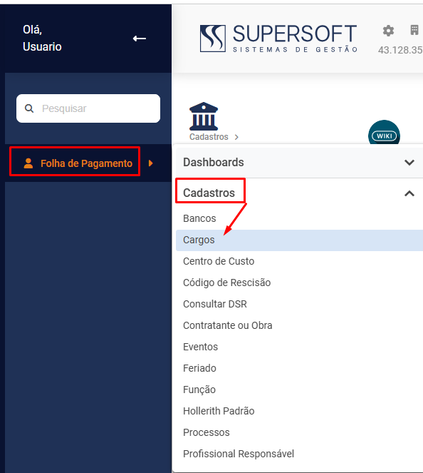 Para cadastrar os Cargos dos Trabalhadores de sua Empresa, acesse o menu Folha de Pagamento>Cadastros>Cargos
