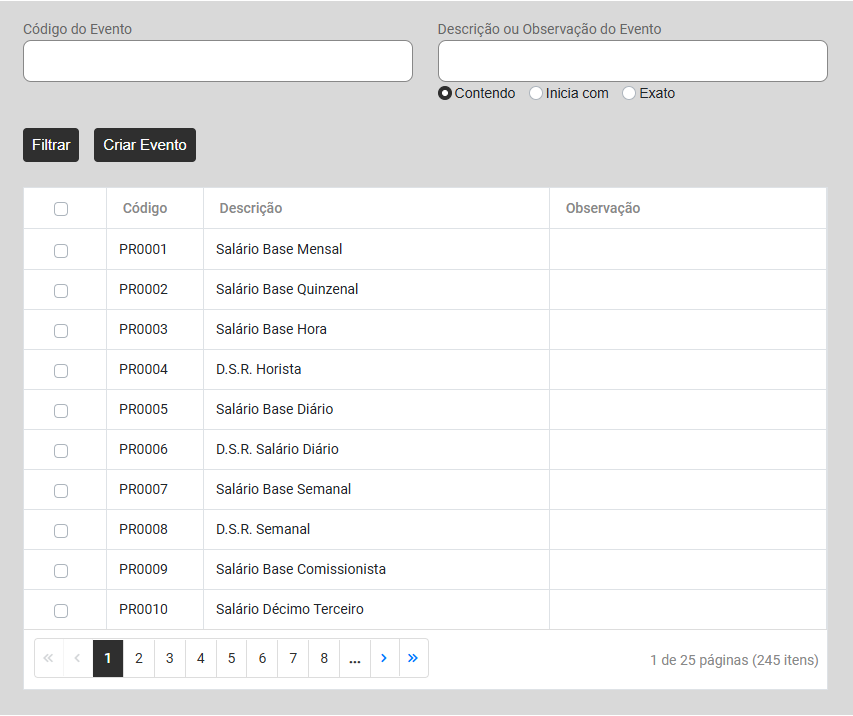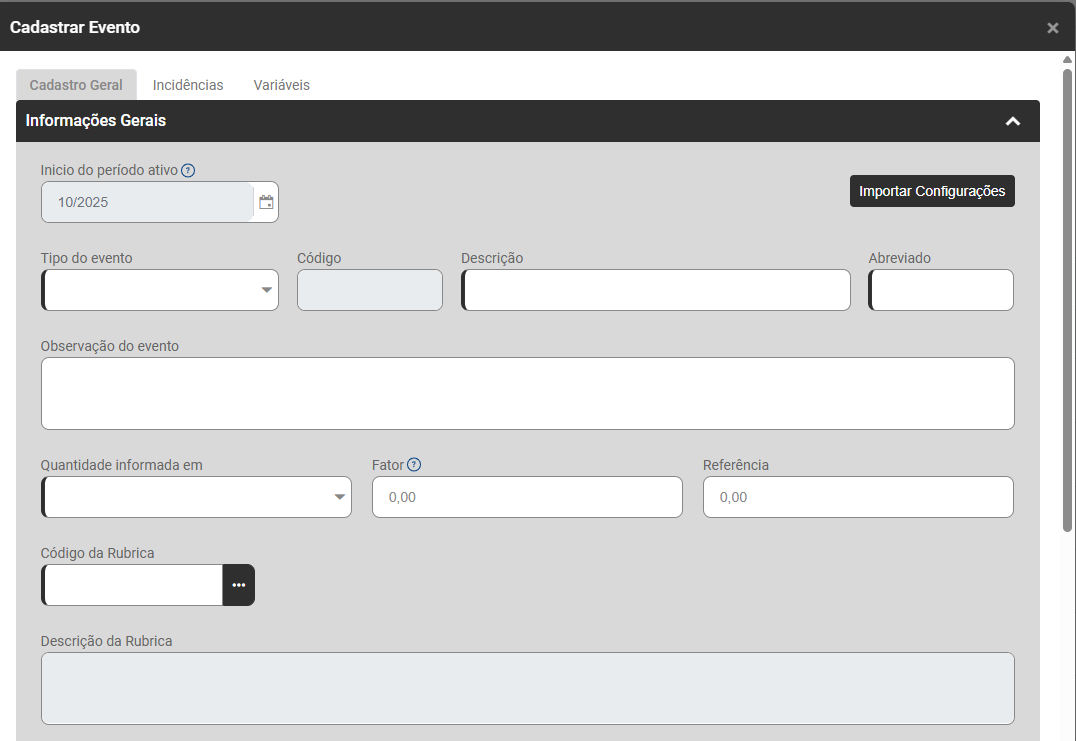 - Abreviado - Nome do evento que será impresso na Folha de Pagamento