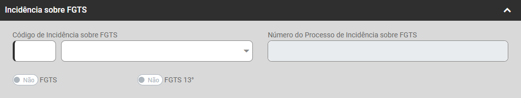 - Número do Processo de incidência sobre FGTS - Caso haja um processo para esse evento no FGTS, o número do processo deverá ser informado